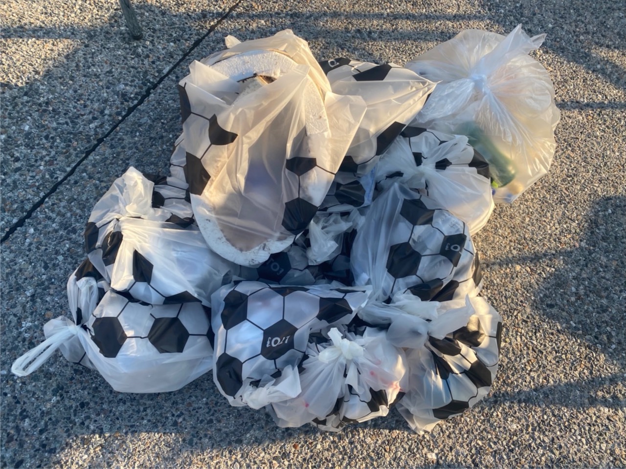 試合後のLTOゴミ拾いでは富山商業高校の生徒の皆さんにもご参加いただき、可燃ごみが多く集まりました。