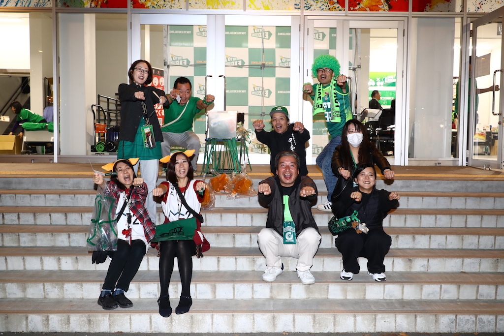 本日は、対戦相手のバンビシャス奈良のサポーターの方が2名参加してくれました。「とても素晴らしい活動ですね!」と声を掛けて下れました。 奈良と言えば「鹿」ですが、サポーターの方も鹿の被り物で参加してくれました。 チームは接戦の末、敗戦でしたが、アウェーのサポーターの方とご一緒できた事はとても良かったです。