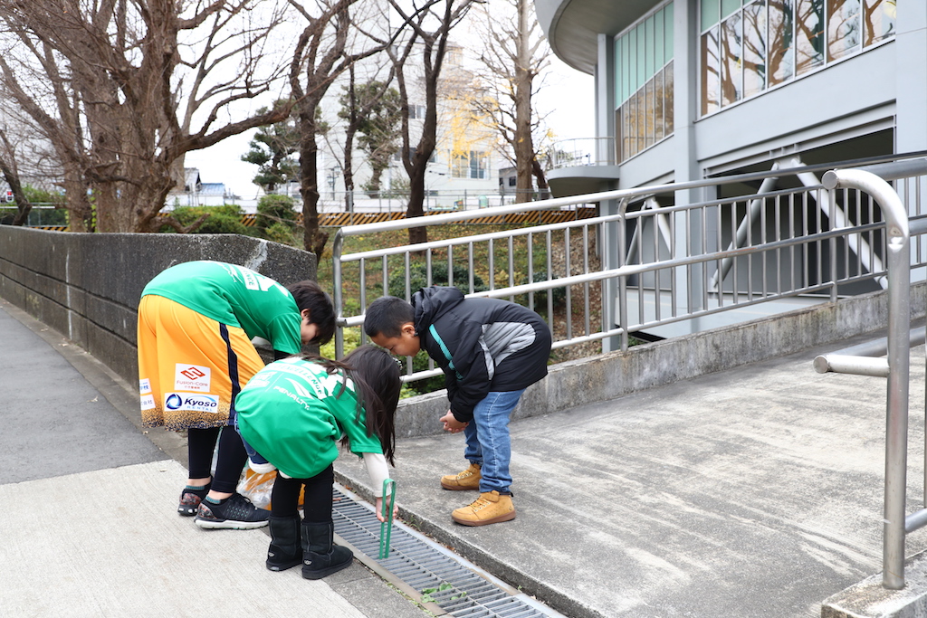 本日も、昨日に引続きエキジビションマッチに参加してくれたミニバスチームが参加してくれました。 最初は何でゴミ拾い?と言う顔をしていましたが、海洋汚染は身近な問題であること街から海にゴミが流れてそれを食べた魚を回りまわって自分たちの食卓に並ぶかも知れない事を話しすと真剣な眼差して聞き活動に参加してくれました。