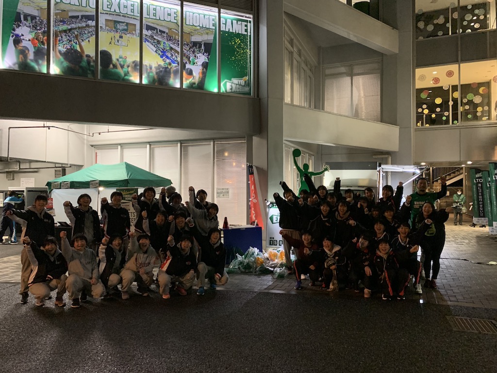 年明け最初のホームゲーム。対戦相手はリーグ勝率1位の群馬戦。初日は冷たい小雨の降る中、決行しました。