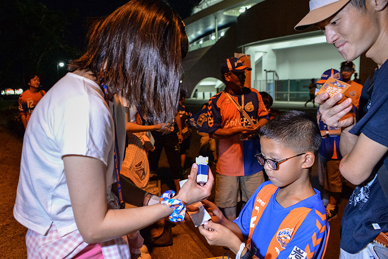 ごみ拾いでは45名の参加者の方と一緒にスタジアム周辺のごみ拾いを行いました。