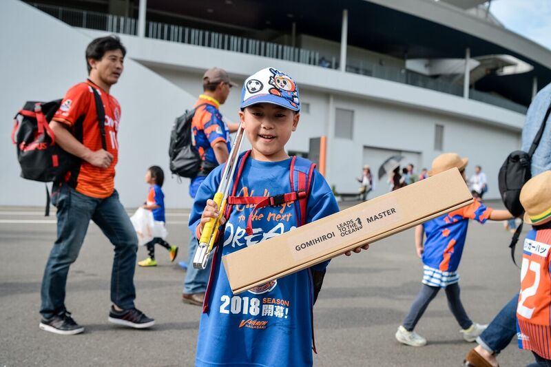 試合前には、トランスコスモススタジアムのピッチ内で「LTOゴミ拾いマスターの表彰式」を開催。