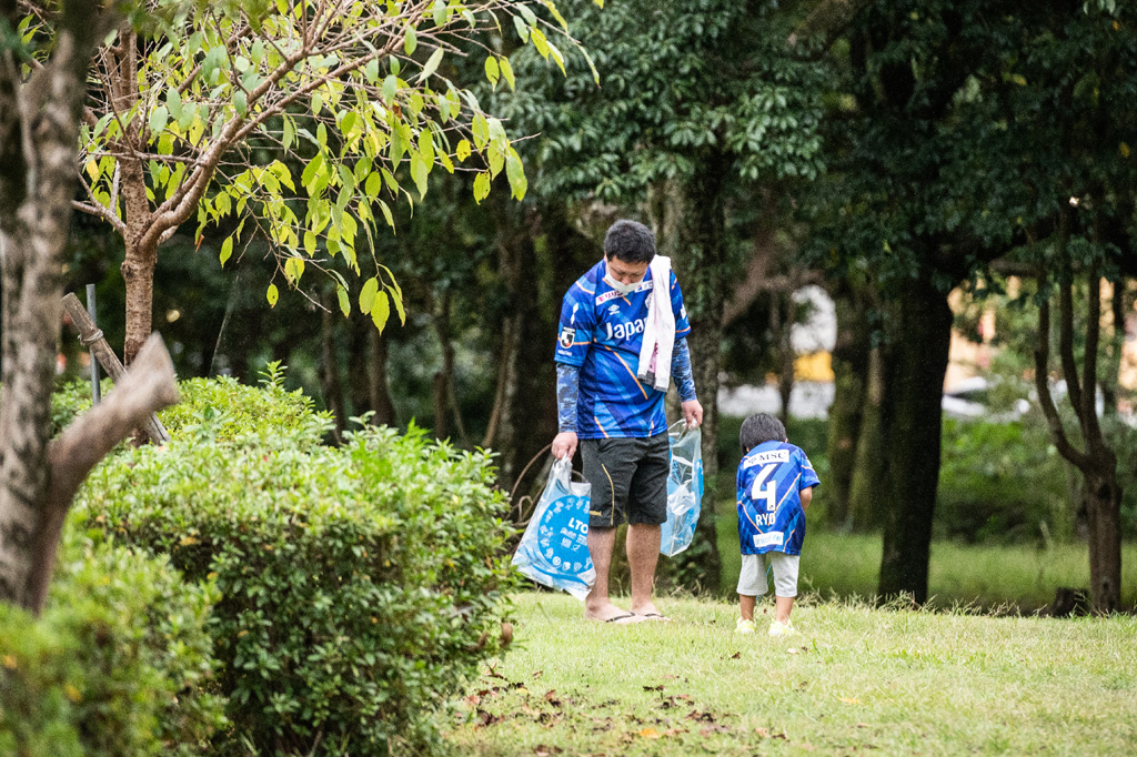 ファン・サポーターの皆さんが日頃より意識してごみはゴミ箱に捨ててくれているので綺麗なスタジアム ですが、参加の皆さんが隅々までゴミを捜索してくれて、毎回スタジアム周りがよりきれいになっていることを実感しています。