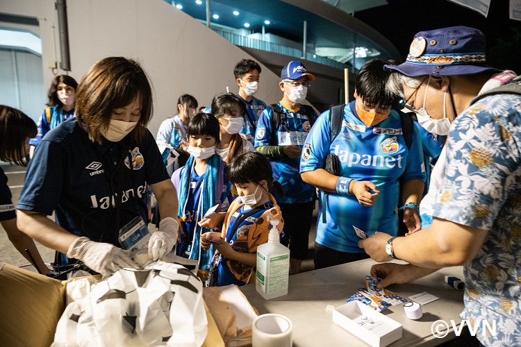 参加受付をホームゴール裏のエコステーション横で行っており、ナイターゲームにもかかわらず多くの方に参加いただきました。
