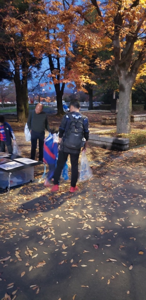 本日のLTOには最終戦セレモニー後ということもあり16:30頃からの開始となりました。薄暗くなり始めて、今節も寒い中での実施となりましたが52名もの方にご参加をいただきました。 紅葉のシーズンも終わり、落ち葉が非常に多くなり、ゴミ拾いがしづらい環境だったかと思います、、、それでも、広範囲にわたりゴミを拾っていただいた皆様には感謝しかございません。