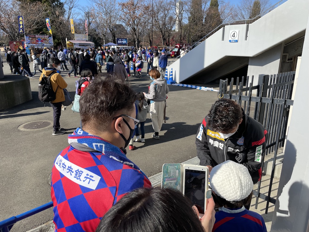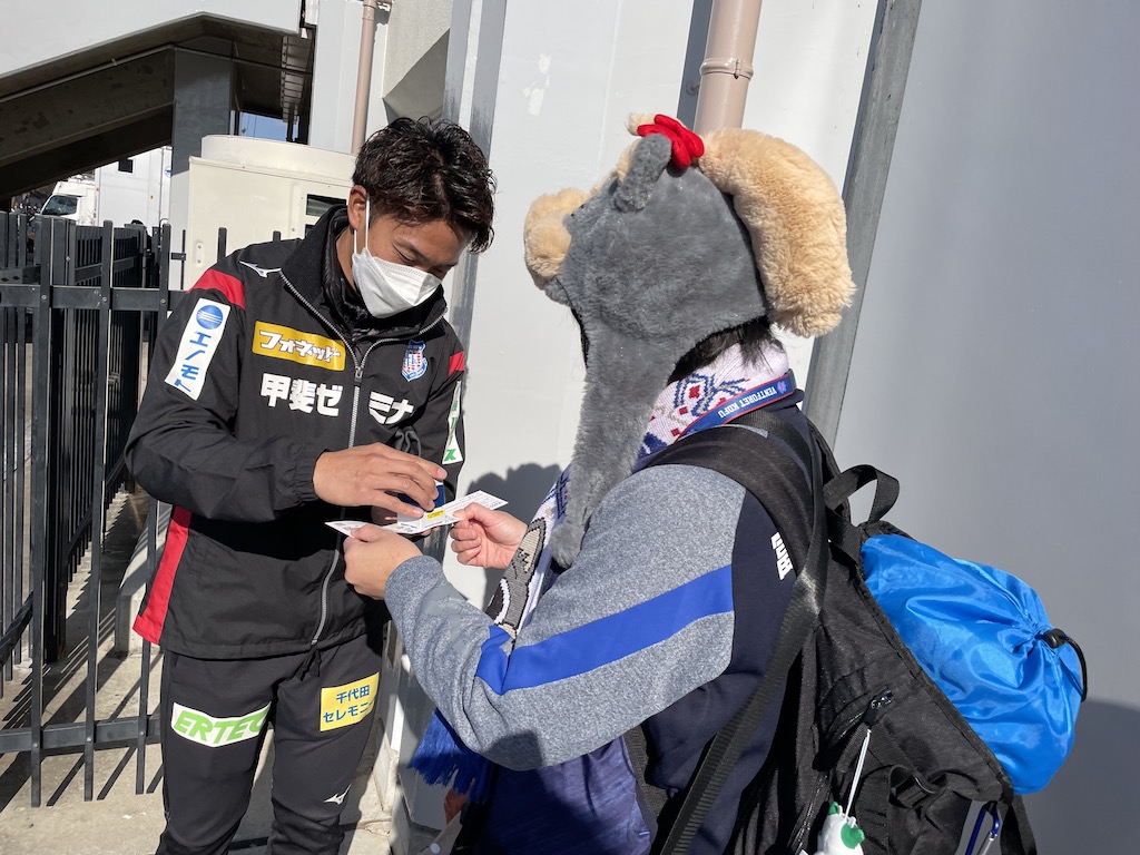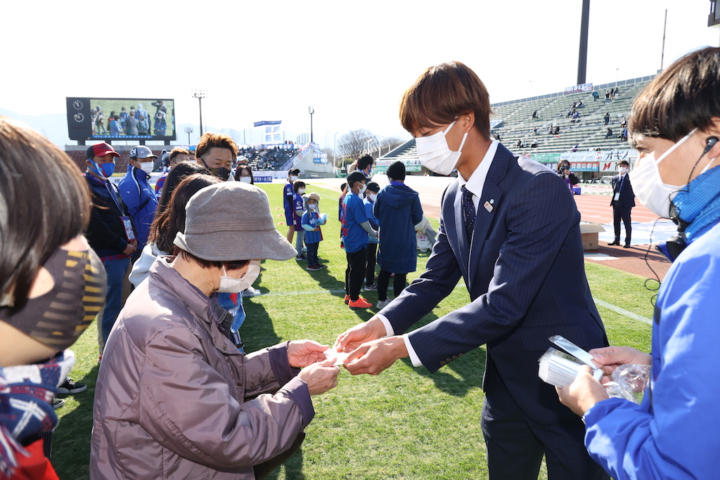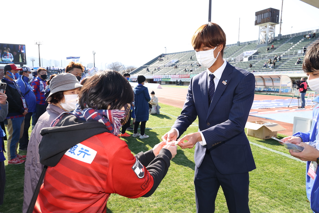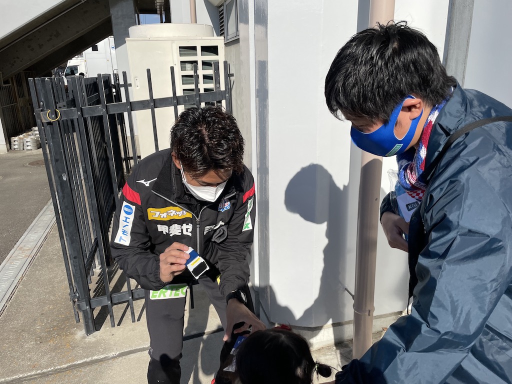 新型コロナウイルスの影響もありましたが、今シーズンも無事にピッチ内での開催+プレゼンターを選手で行うことができました。ジャバラゲートでピッチ入場を待つときはワクワク・ドキドキした様子が伝わってきます。プレゼンターは今シーズン29試合出場し、1ゴールを記録した野澤英之選手!!野澤英選手とわかるとマスターの皆さんから歓声が!!賞品のポンチョとマスターカードを一人一人丁寧におわたしするところが野澤英選手らしかったです。来シーズンの表彰式は三桁越えを目指していきたいと思います。